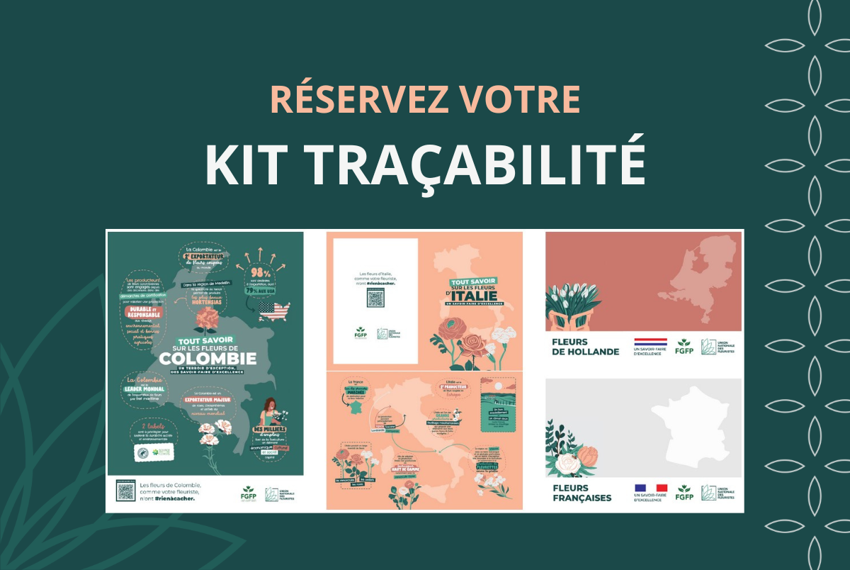 L'UNF et la FGFP lancent le Kit Traçabilité pour vous aider à mieux informer vos clients sur l'origine de vos produits. Totalement gratuit pour le fleuriste, son coût est pris en charge par l'UNF et les grossistes adhérents de la FGFP.